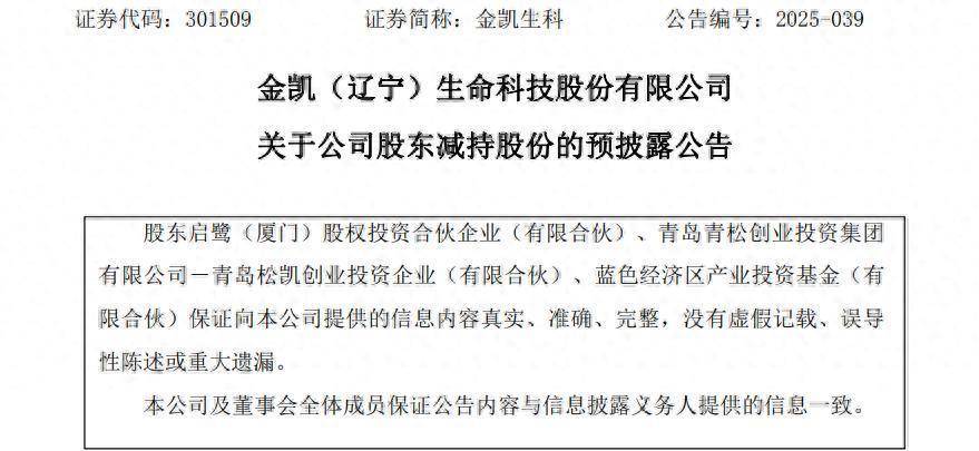 此次并非三家股东今年内首次减持金凯生科股份。9月8日,金凯生科公告,股东蓝区基金通过集中竞价和大宗交易方式,在2025年5月22日至2025年9月1日期间,累计减持公司股份316.84万股,占公司总股本的2.63%,减持均价分别为41.64元/股和40.04元/股。